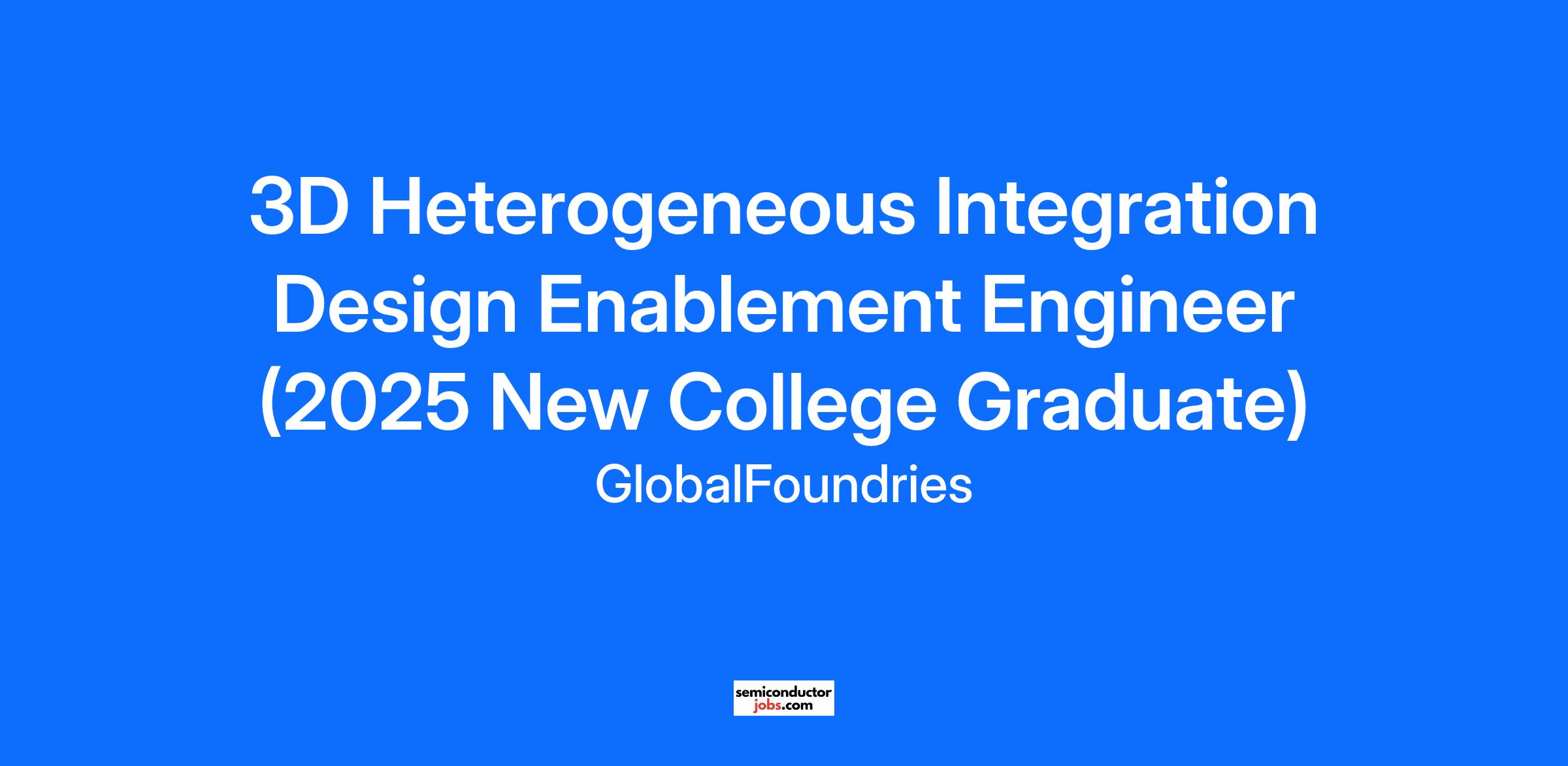 GlobalFoundries Fab8 is seeking a motivated R&D design enablement engineer to become part of our state-of-the-art 300mm fabrication facility in Malta, New York. This role will entail 3D heterogeneous integration (3DHI) design enablement to enable our next-generation advanced packaging R&D efforts, which include wafer-to-wafer bonding, die-to-wafer bonding, TSV/TOV and interposer development.