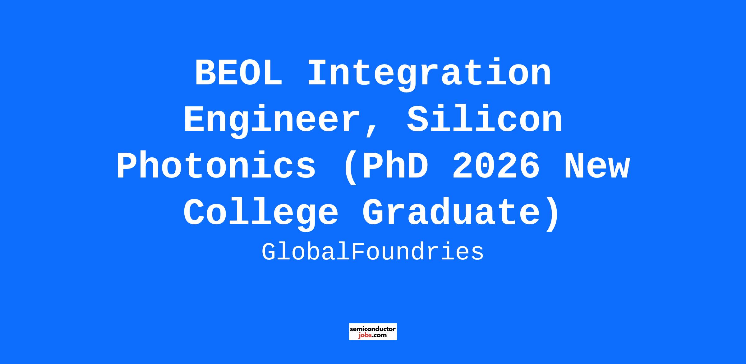 This position is for a BEOL (Back End Of Line) Integration Engineer to be a part of a Technology Development Integration engineering team participating in advanced technology development and manufacturing implementation in GlobalFoundries’ state of the art 300mm wafer fab (Fab8) in Malta, New York. The position is a Principal level within Global Foundries.