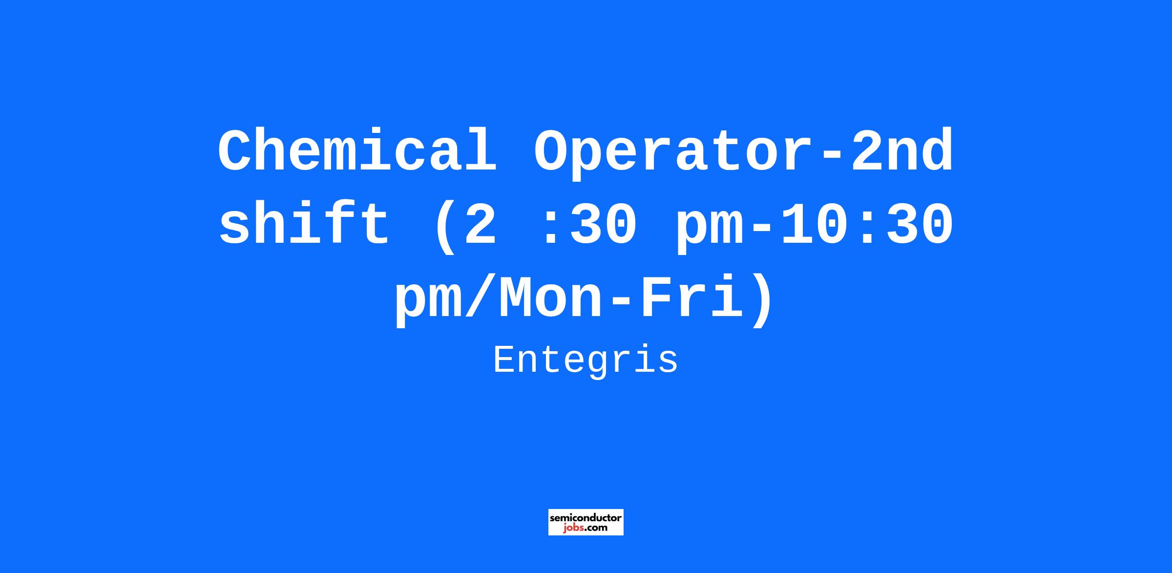 Chemical Operator-2nd shift (2 :30 pm-10:30 pm/Mon-Fri)Job Description: