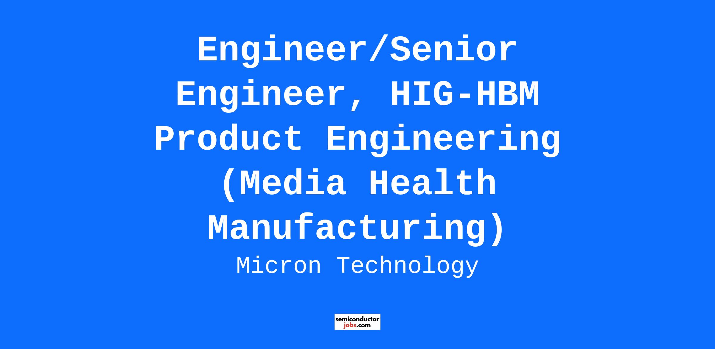 Engineer/Senior Engineer, HIG-HBM Product Engineering (Media Health Manufacturing)