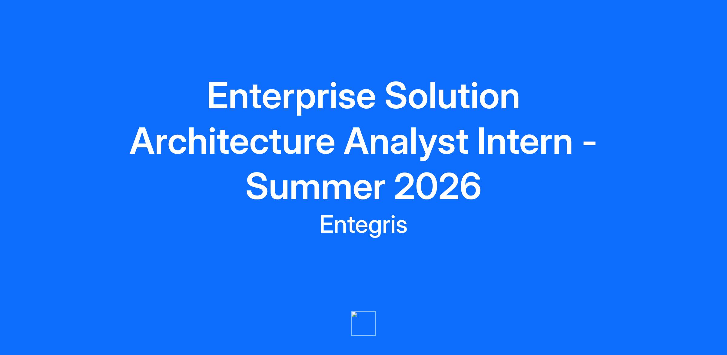 Enterprise Solution Architecture Analyst Intern - Summer 2026Job Description:
