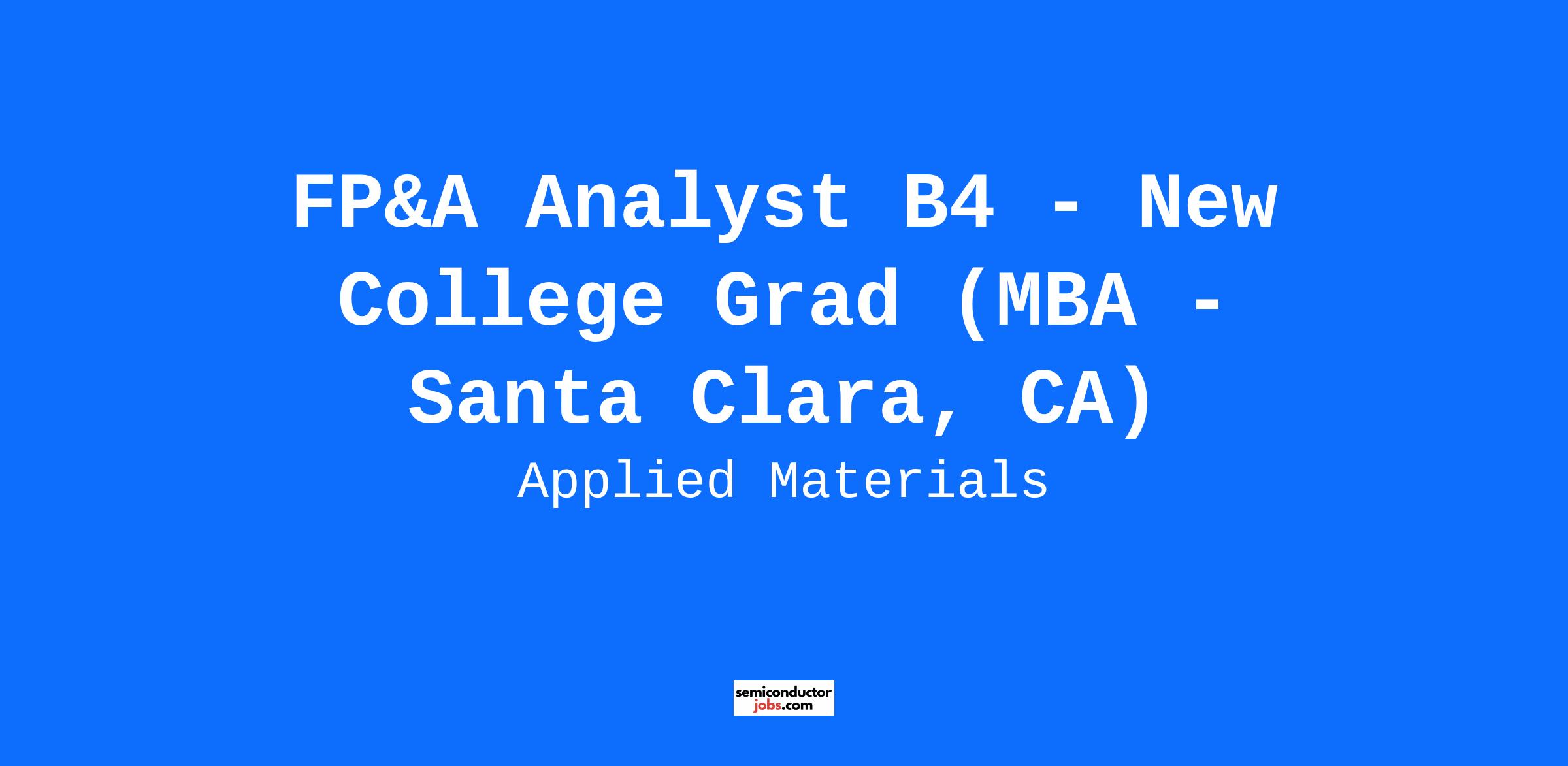Who We Are Applied Materials is a global leader in materials engineering solutions used to produce virtually every new chip and advanced display in the world. We design, build and service cutting-edge equipment that helps our customers manufacture display and semiconductor chips - the brains of devices we use every day. As the foundation of the global electronics industry, Applied enables the exciting technologies that literally connect our world - like AI and IoT. If you want to push the boundaries of materials science and engineering to create next generation technology, join us to deliver material innovation that changes the world. What We Offer Salary: $133,500.00 - $183,500.00 Location: Santa Clara,CA You'll benefit from a supportive work culture that encourages you to learn, develop, and grow your career as you take on challenges and drive innovative solutions for our customers. We empower our team to push the boundaries of what is possible—while learning every day in a supportive leading global company. Visit our Careers website to learn more. At Applied Materials, we care about the health and wellbeing of our employees. We're committed to providing programs and support that encourage personal and professional growth and care for you at work, at home, or wherever you may go. Learn more about our benefits. Key Responsibilities Lead contributor to key financial forecast cycles, including ownership of task accuracy and data integrity Drives high level projects consisting of complex relationship interactions and direct exposure to senior mgmt. Reviews, monitors and authorizes transactions for subgroups within finance Prepares detailed models for executive consumption and develops presentation of results Process integration lead and/or work stream owner in support of local/regional finance initiatives Functional Knowledge Demonstrates depth and/or breadth of expertise in own specialized discipline or field Business Expertise Interprets internal/external business challenges and recommends best practices to improve products, processes or services Leadership May lead functional teams or projects with moderate resource requirements, risk, and/or complexity Problem Solving Leads others to solve complex problems; uses sophisticated analytical thought to exercise judgment and identify innovative solutions Impact Impacts the achievement of customer, operational, project or service objectives; work is guided by functional policies Interpersonal Skills Communicates difficult concepts and negotiates with others to adopt a different point of view Additional Information Time Type: Full time Employee Type: New College Grad Travel: Not Specified Relocation Eligible: Yes The salary offered to a selected candidate will be based on multiple factors including location, hire grade, job-related knowledge, skills, experience, and with consideration of internal equity of our current team members. In addition to a comprehensive benefits package, candidates may be eligible for other forms of compensation such as participation in a bonus and a stock award program, as applicable. For all sales roles, the posted salary range is the Target Total Cash (TTC) range for the role, which is the sum of base salary and target bonus amount at 100% goal achievement. Applied Materials is an Equal Opportunity Employer. Qualified applicants will receive consideration for employment without regard to race, color, national origin, citizenship, ancestry, religion, creed, sex, sexual orientation, gender identity, age, disability, veteran or military status, or any other basis prohibited by law. In addition, Applied endeavors to make our careers site accessible to all users. If you would like to contact us regarding accessibility of our website or need assistance completing the application process, please contact us via e-mail at Accommodations_Program@amat.com, or by calling our HR Direct Help Line at 877-612-7547, option 1, and following the prompts to speak to an HR Advisor. This contact is for accommodation requests only and cannot be used to inquire about the status of applications.