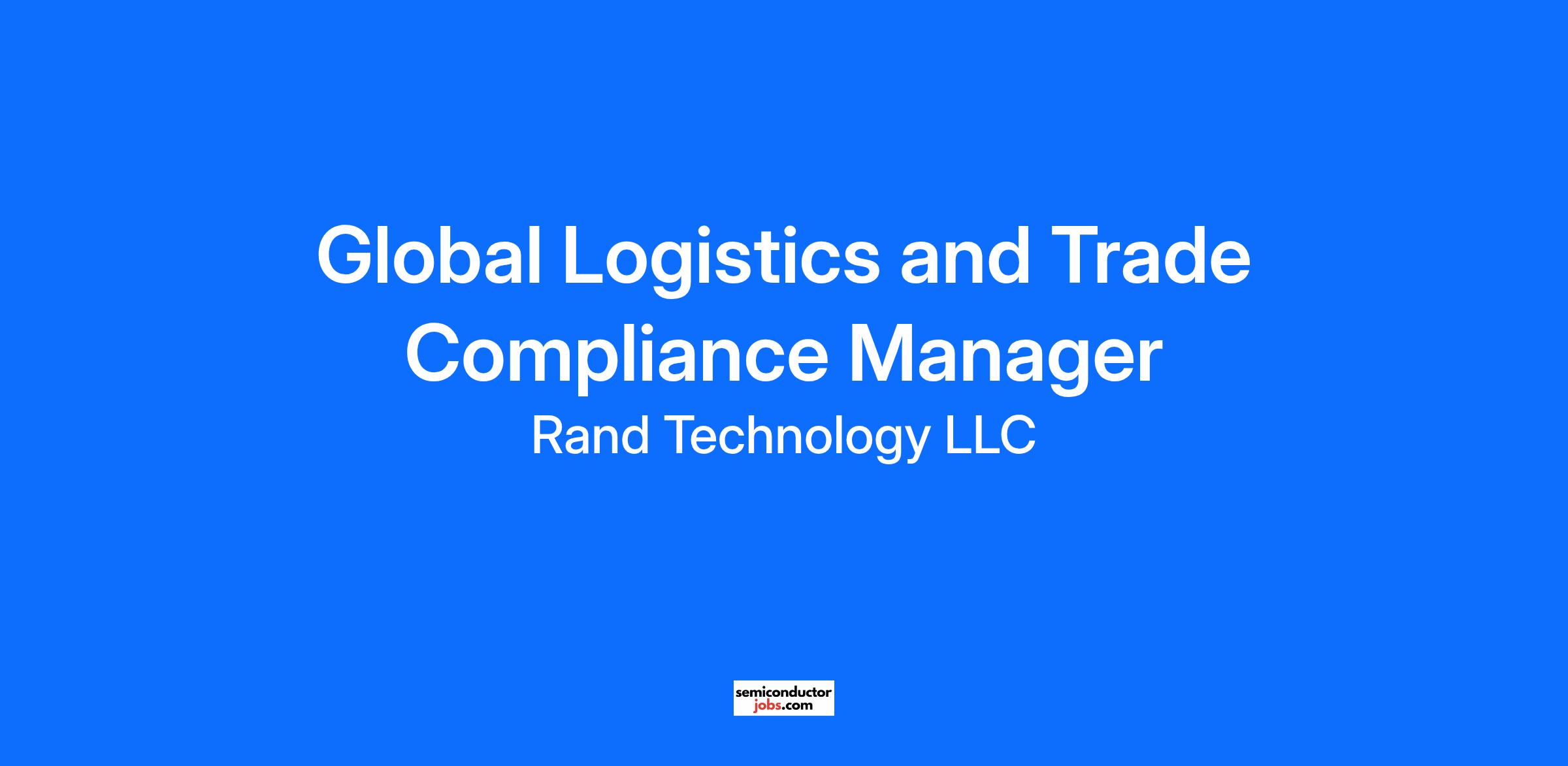 The Global Logistics & Trade Compliance Manager is responsible for developing, managing, and continuously improving Rand Technology’s global logistics and trade compliance operations. This role ensures that all shipments – whether inbound, outbound, or intercompany – move efficiently, cost-effectively, and in full compliance with international trade regulations. The Manager will act as the company’s subject matter expert for logistics and trade compliance, providing timely updates and insights to internal stakeholders and ensuring operational alignment across our facilities in Irvine, Hong Kong, Singapore, and Amsterdam.