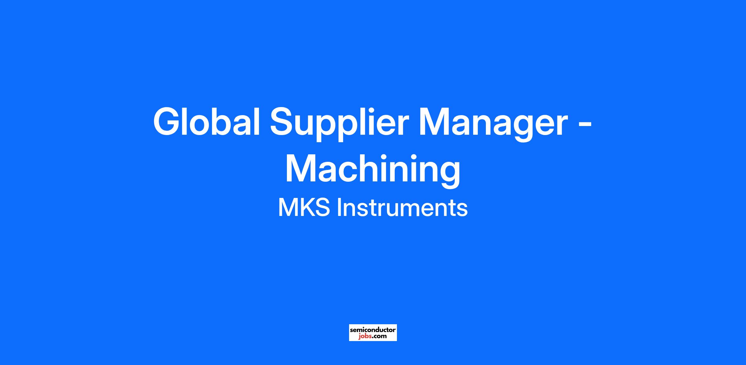 As a Global Supplier Manager at MKS Inc., you will partner with Engineering, Procurement, Category Management and Sourcing to develop, refine, and update the machining supply base strategy In this role, you will report to the Sr. Manager, Global Machining Category Management.