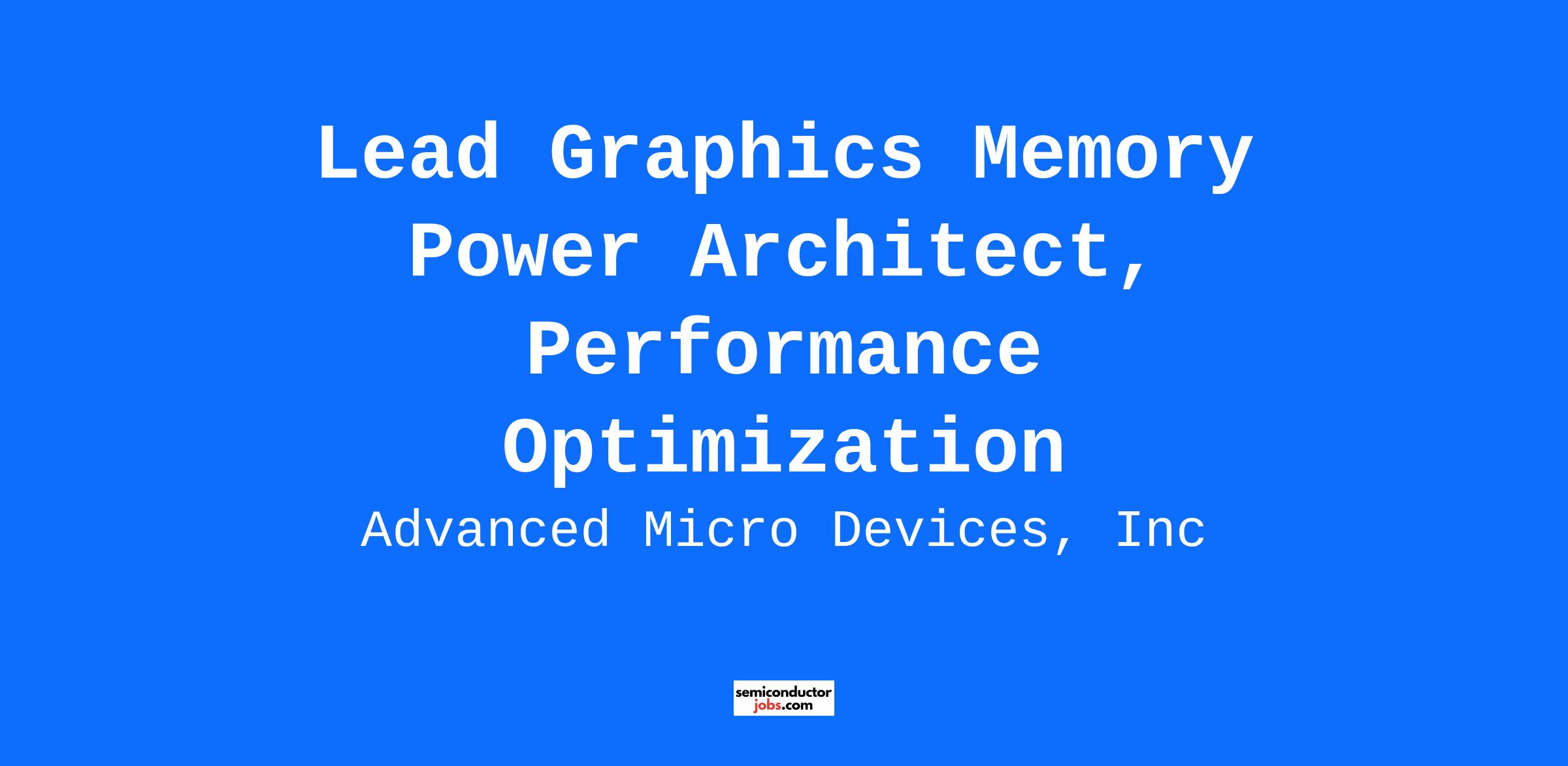 Together, we advance your career. THE ROLE: As a Lead Graphics Memory Power Architect, Performance Optimization, you will lead architectural power optimization efforts across memory-related components in AMD’s next-generation GPU and APU products. You will be part of a cross-functional architecture team focused on delivering industry-leading performance-per-watt (PPA) across compute, gaming, and AI workloads. This role is central to AMD’s “shift-left” initiative—embedding power efficiency early in the architecture phase to reduce downstream design costs and improve silicon efficiency. THE PERSON: You have a passion for modern, complex GFX architecture and digital design. You are a team player who has excellent communication skills and experience collaborating with other engineers located in different sites/time zones. You have strong analytical and problem-solving skills and are willing to learn and ready to take on problems. Leadership Skills: KEY RESPONSIBILITIES: PREFERRED EXPERIENCE: ACADEMIC CREDENTIALS: LOCATION: #LI-BM1 #LI-Hybrid Benefits offered are described: AMD benefits at a glance. AMD does not accept unsolicited resumes from headhunters, recruitment agencies, or fee-based recruitment services. AMD and its subsidiaries are equal opportunity, inclusive employers and will consider all applicants without regard to age, ancestry, color, marital status, medical condition, mental or physical disability, national origin, race, religion, political and/or third-party affiliation, sex, pregnancy, sexual orientation, gender identity, military or veteran status, or any other characteristic protected by law. We encourage applications from all qualified candidates and will accommodate applicants’ needs under the respective laws throughout all stages of the recruitment and selection process.