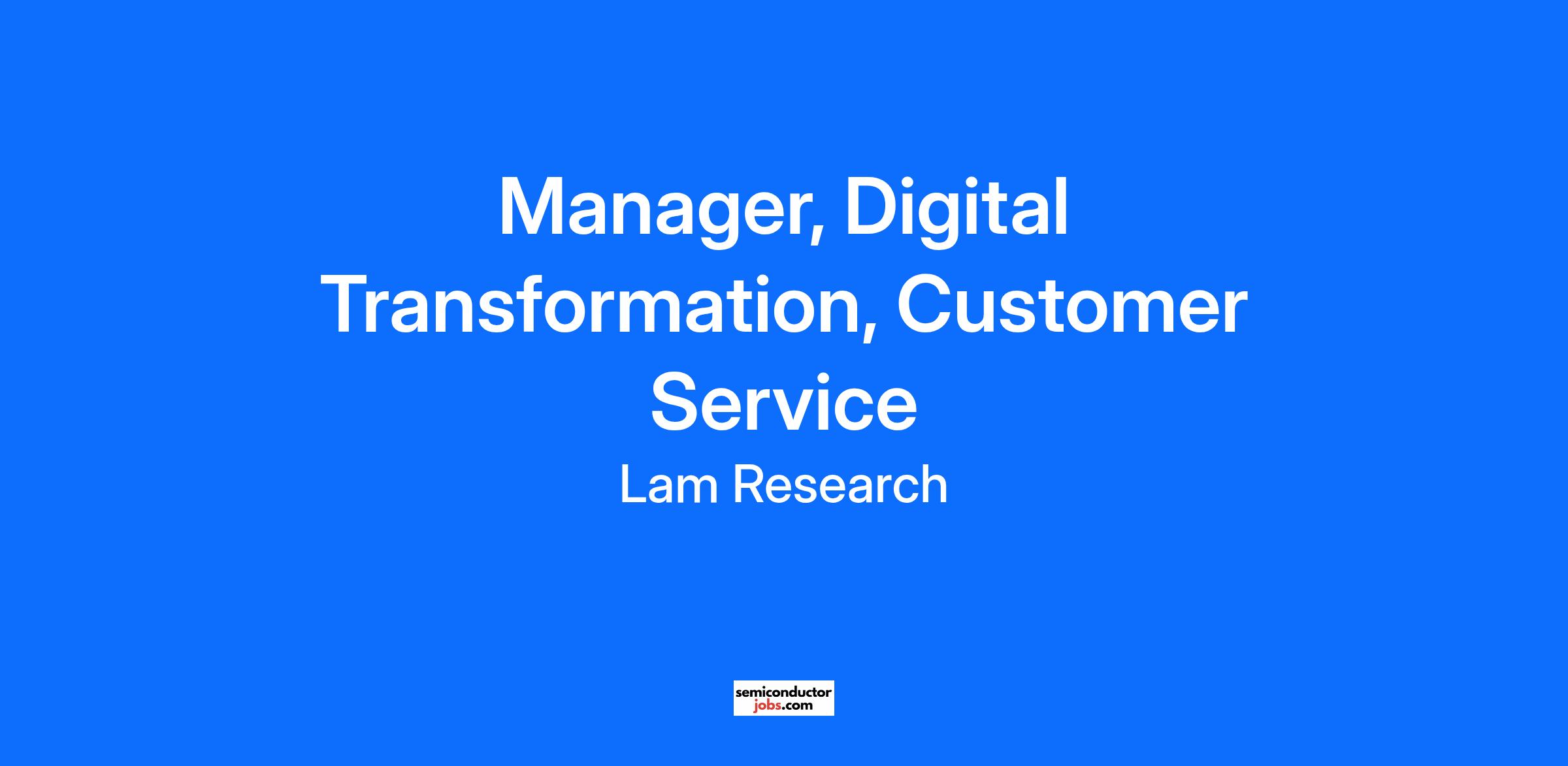 Manager, Digital Transformation, Customer Service