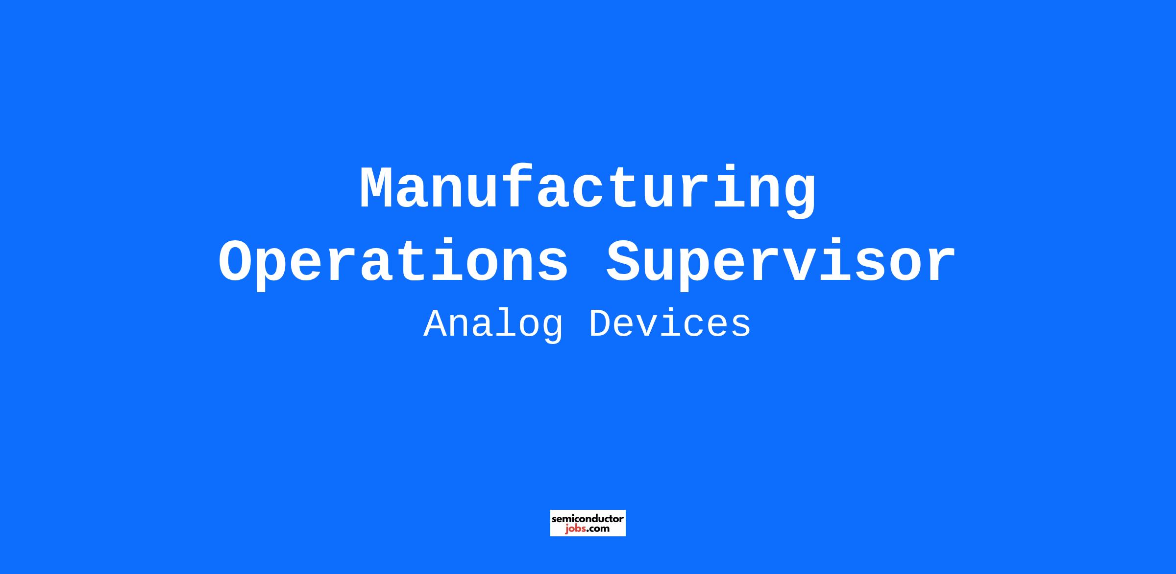 Manufacturing Operations Supervisor