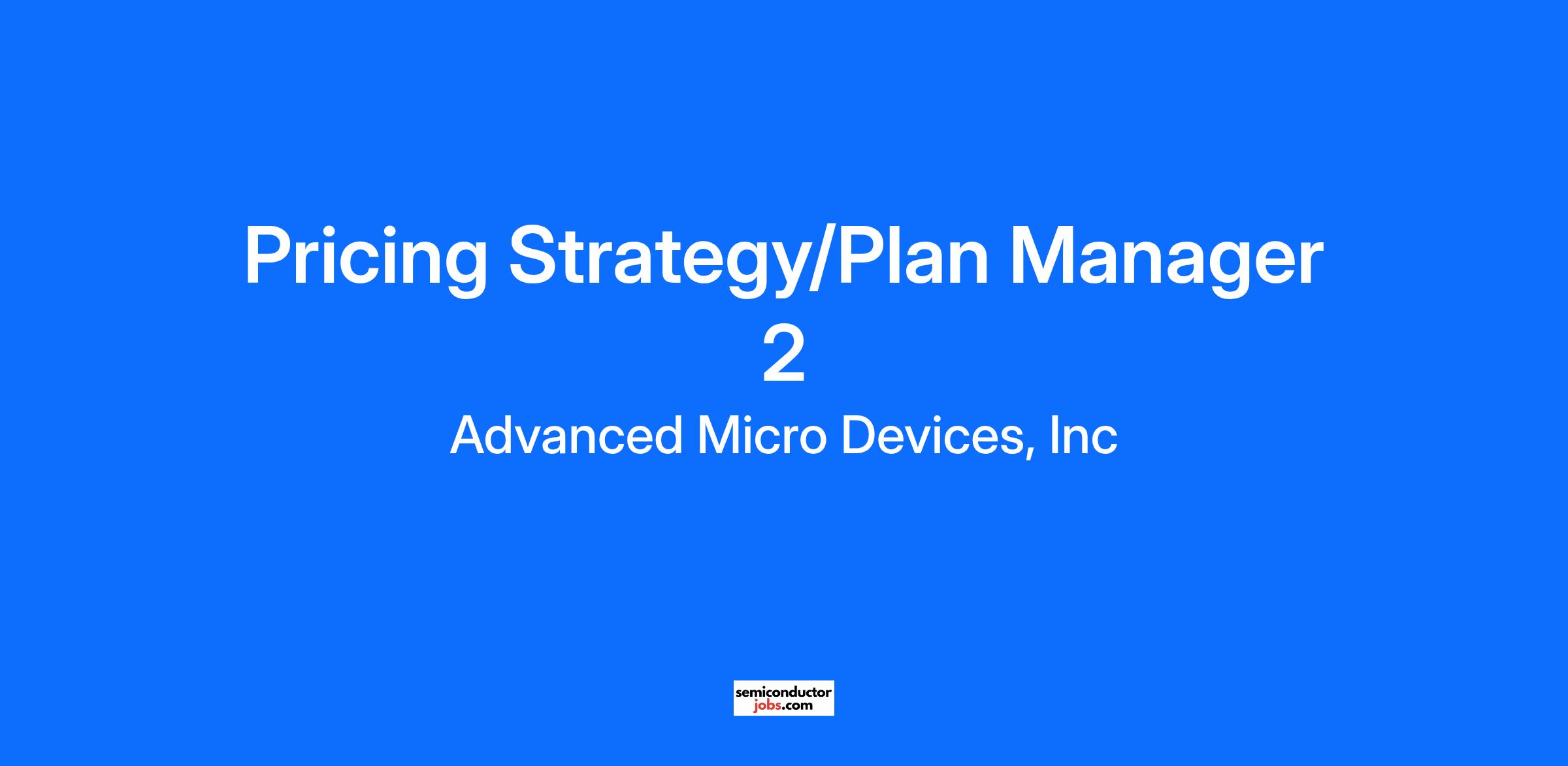 Together, we advance your career. THE ROLE: As Client Pricing Strategy and Planning Manager, your primary mission will be to develop the pricing strategy supporting the Client business and then execute that strategy flawlessly to grow Client profitability. You will work closely with the business unit, sales, operations and finance in the development of the winning strategy. Key elements to the winning strategy are comprehending the competitive landscape and market, customer needs and the right product portfolio. You will be part of a team that includes other strategists, deal desk and contract personnel. You will be reporting to the Director of Client Pricing Strategy and Planning. THE PERSON: The ideal candidate has experience applying analytical and strategic critical thinking to pricing topics towards growing the business. They possess strong interpersonal communication skills and can build collaborative relationships across all levels of the business. This person will quickly understand customer requirements, pricing structures and market conditions and translate this information into pricing strategies for the teams they partner with. In addition, this person is a proactive problem solver who is self-sufficient, able to self-manage their work, and takes initiative to drive results. KEY RESPONSIBILITIES: PREFERRED EXPERIENCE: ACADEMIC CREDENTIALS #LI-AG1 #LI-HYBRID Benefits offered are described: AMD benefits at a glance. AMD does not accept unsolicited resumes from headhunters, recruitment agencies, or fee-based recruitment services. AMD and its subsidiaries are equal opportunity, inclusive employers and will consider all applicants without regard to age, ancestry, color, marital status, medical condition, mental or physical disability, national origin, race, religion, political and/or third-party affiliation, sex, pregnancy, sexual orientation, gender identity, military or veteran status, or any other characteristic protected by law. We encourage applications from all qualified candidates and will accommodate applicants’ needs under the respective laws throughout all stages of the recruitment and selection process.