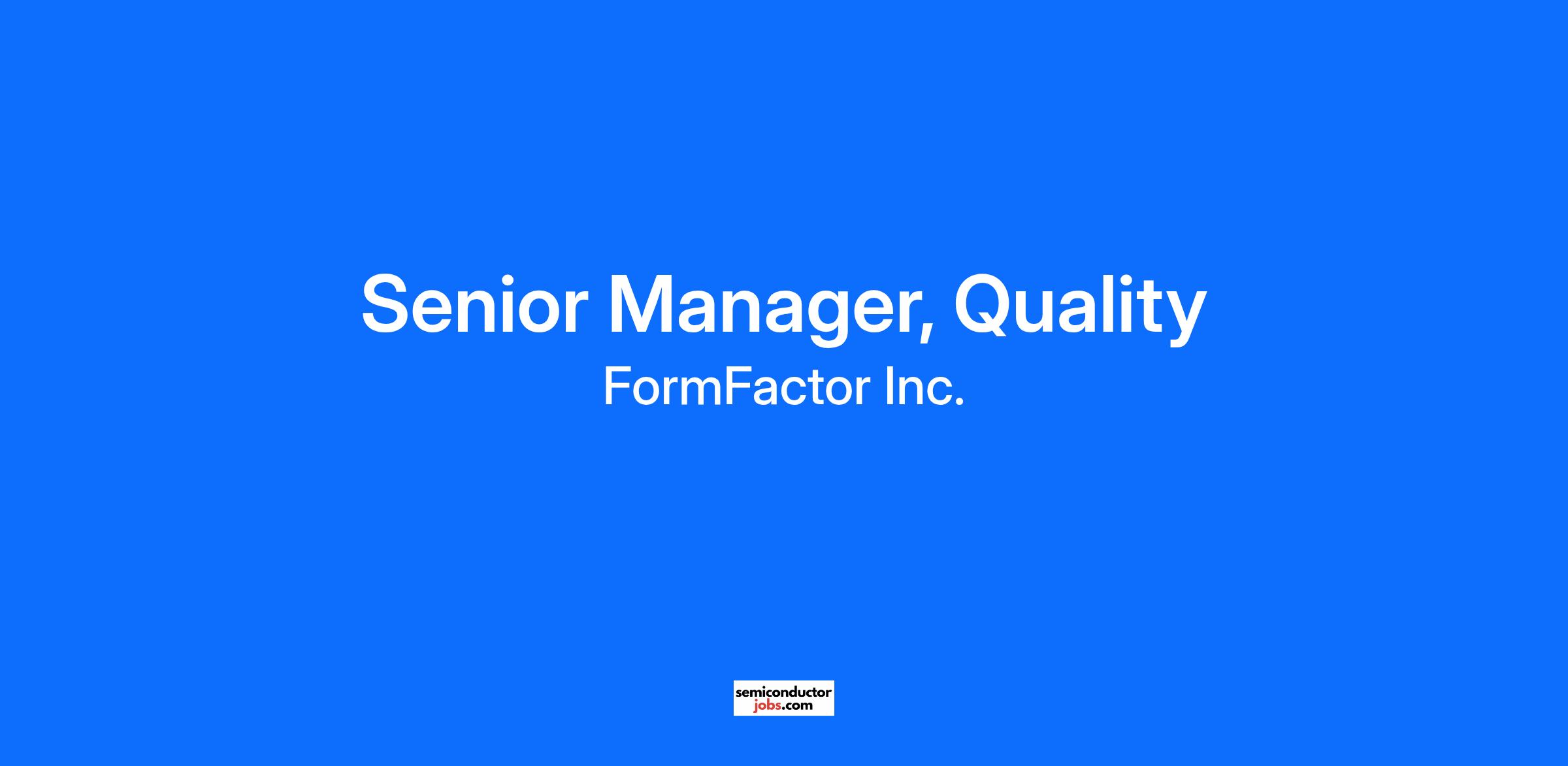The Senior Manager, Quality will be responsible for building and leading the operational quality & reliability framework at FormFactor’s new Farmers Branch manufacturing and fabrication site. This role will establish site-level quality organization, quality systems, drive compliance with global standards, and ensure alignment with customer expectations and corporate objectives. The ideal candidate will bring deep experience in semiconductor manufacturing and customer quality, QMS frameworks, reliability and failure analysis, and a passion for building from the ground up.