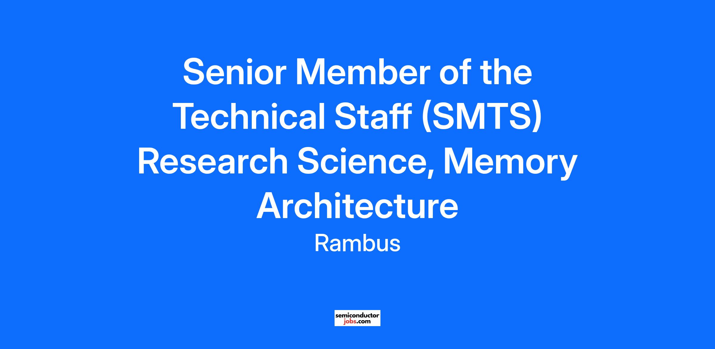 Rambus Labs is seeking a talented Senior Member of the Technical Staff (SMTS) to research and develop future memory system architectures that will have real world impact. The SMTS will be responsible for working with our most senior technologists researching and architecting future DRAM-based memory subsystems.