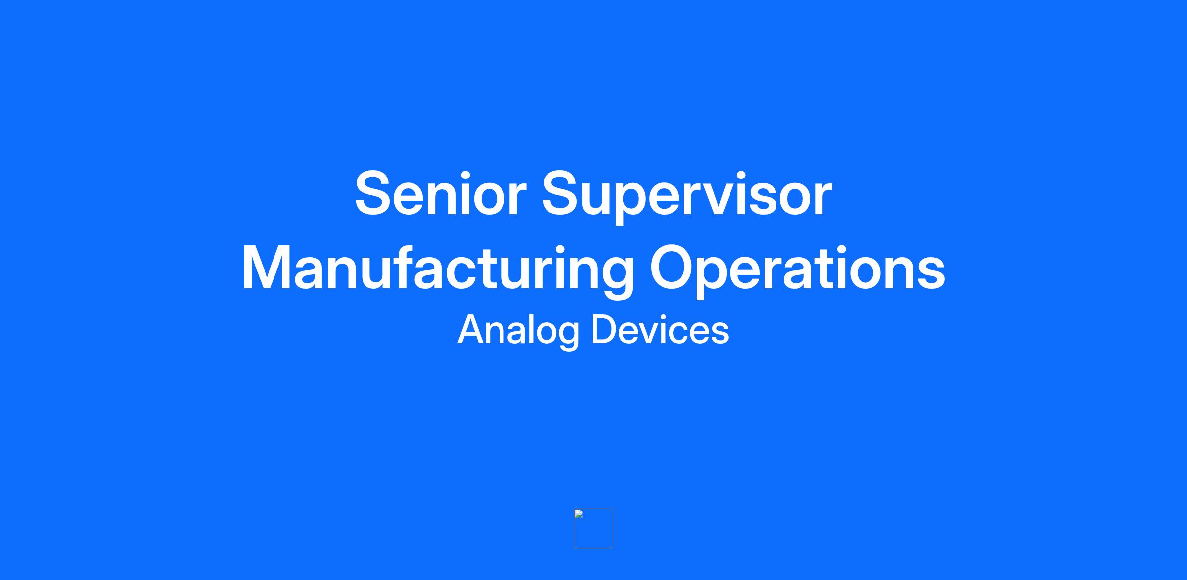 Analog Devices' has an immediate opening for a Day shift Back-half supervisor in our Beaverton, OR facility. Experience with Wafer Fab is a plus but not required. The position reports to the Manufacturing Operations Manager.