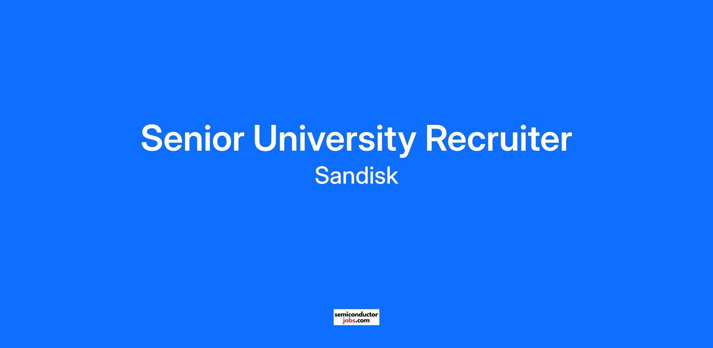 The Sandisk University Recruitment team is hiring a Recruiter focused on technical hires pursuing Bachelors, Masters and PhD. Opportunity is also open to hybrid or remote worker pending on location. Ideal candidate location is Bay Area, Northern California.