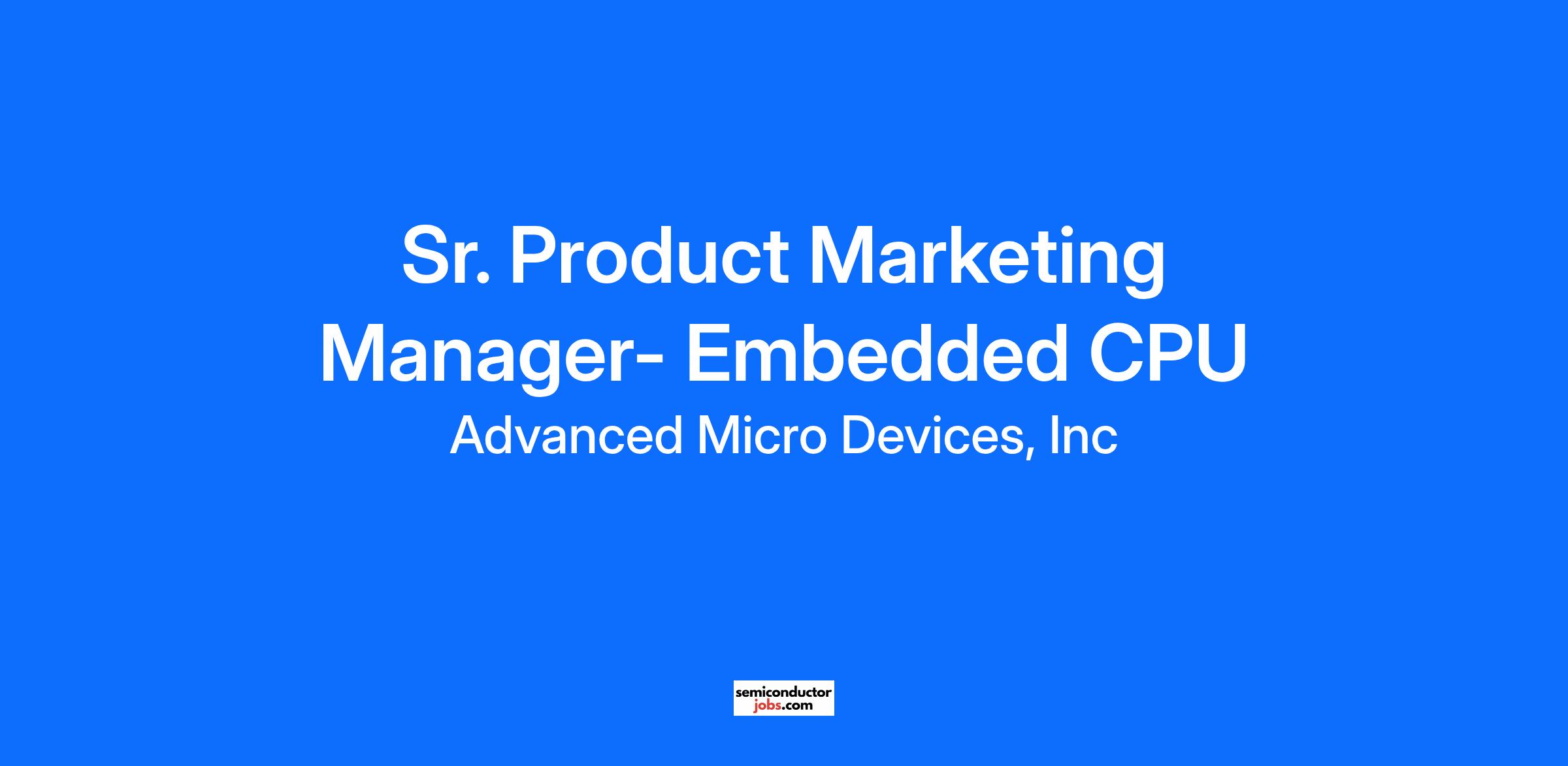 AMD Adaptive and Embedded Computing Group is seeking a high-energy Senior Product Marketing Manager to join this fast-growing team.