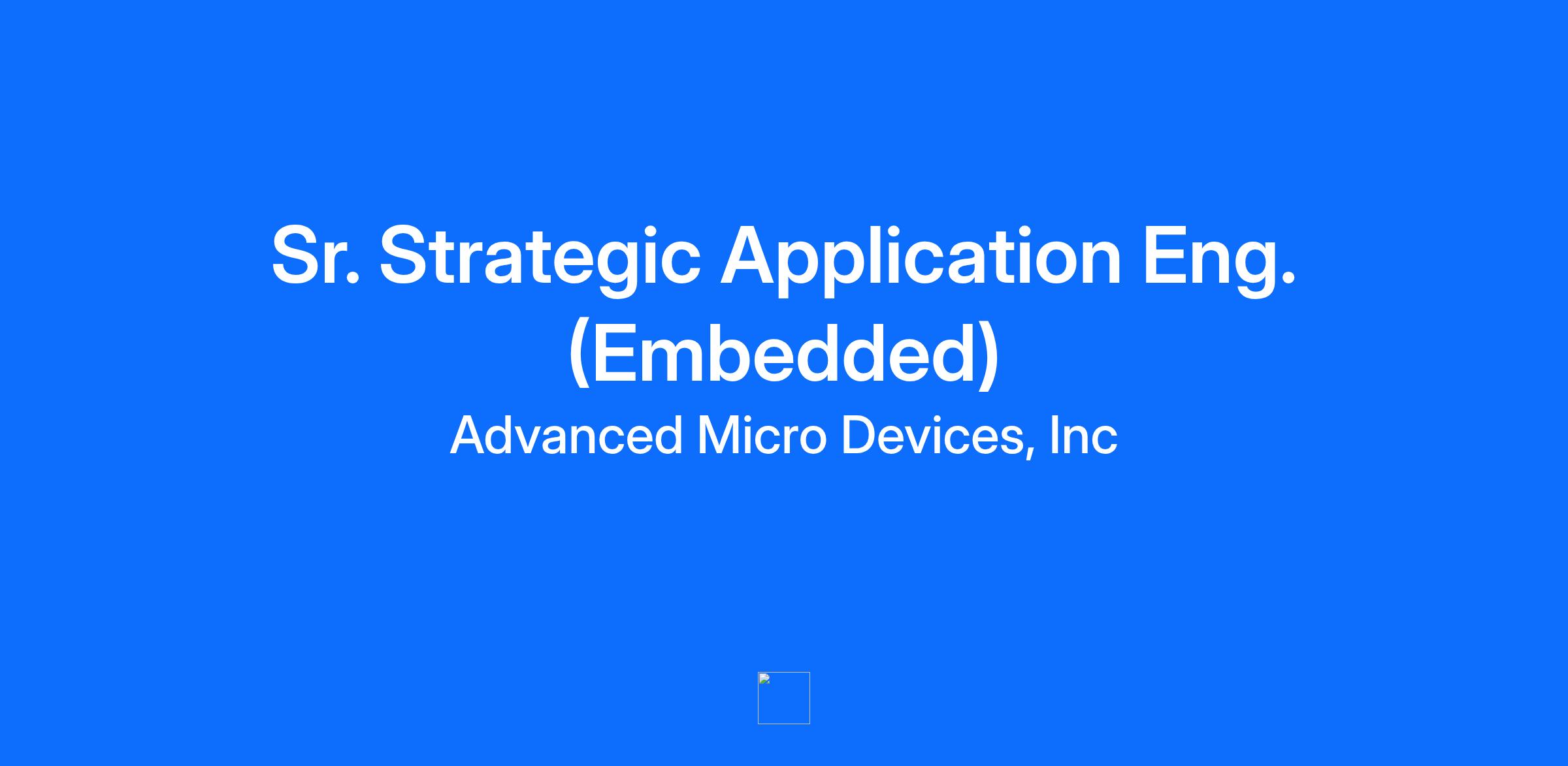 AMD’s Strategic Applications Engineering Organization is responsible for supporting our Sales and Field Applications engineers to drive design wins and support customers in achieving production.