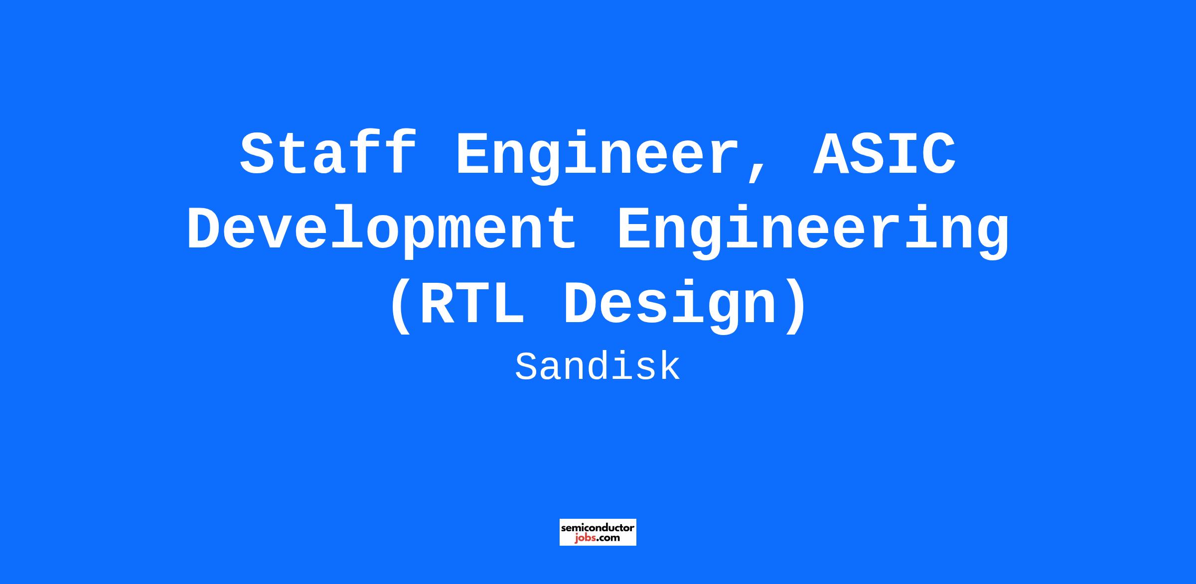 Sandisk is committed to offering opportunities to applicants with disabilities and ensuring all candidates can successfully navigate our careers website and our hiring process. Please contact us at [email protected] to advise us of your accommodation request. In your email, please include a description of the specific accommodation you are requesting as well as the job title and requisition number of the position for which you are applying.