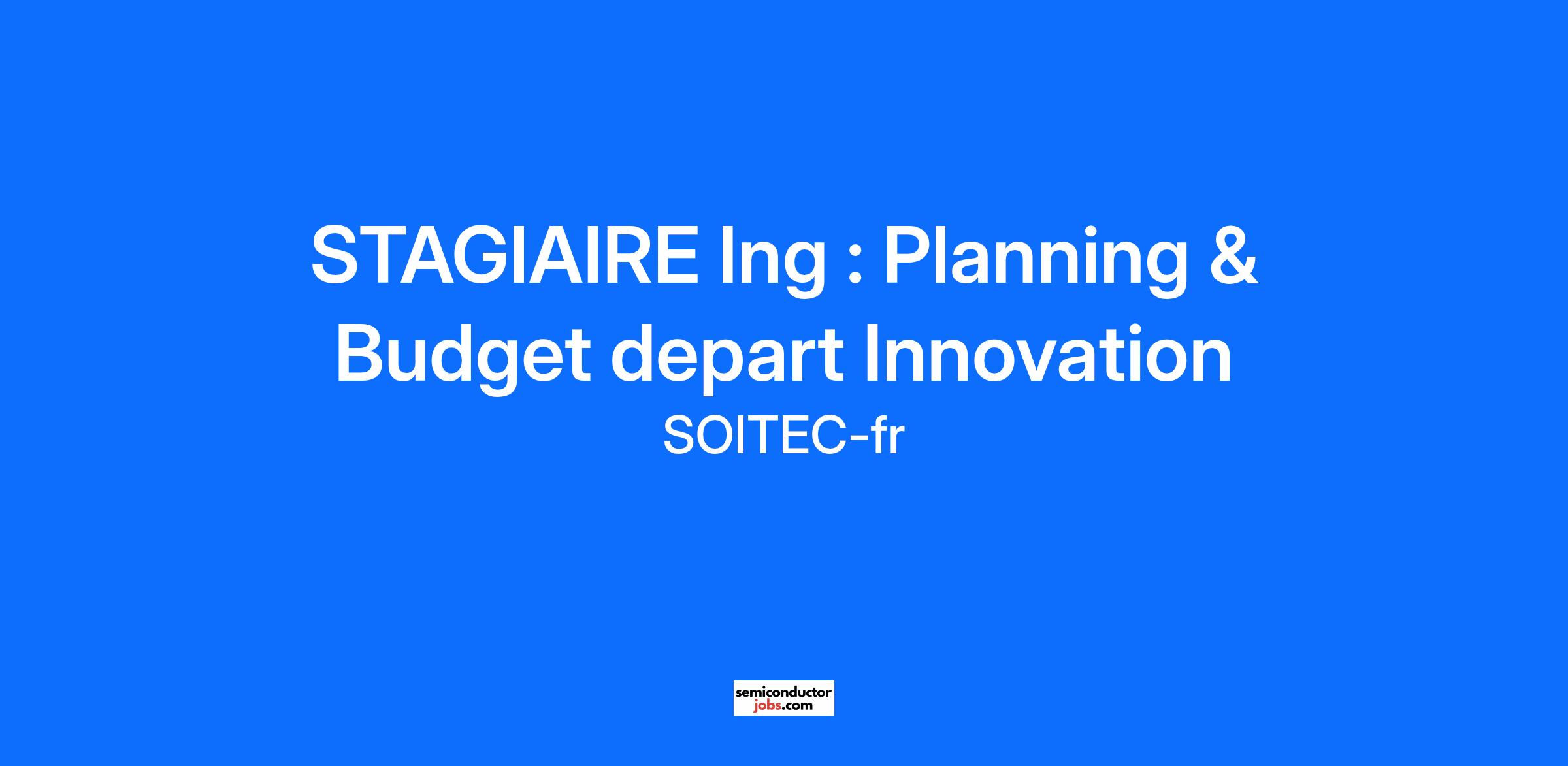 STAGIAIRE Ing : Planning & Budget depart Innovation