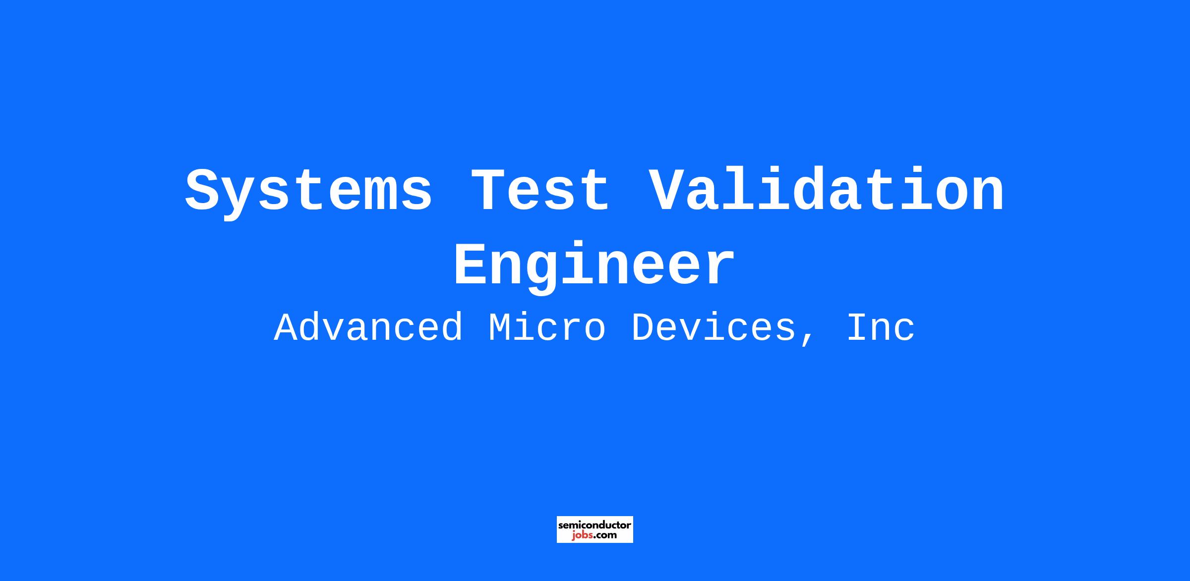 Together, we advance your career. THE ROLE: We are seeking a collaborative and motivated Systems Test Validation Engineer to join our team. In this role, you will develop and execute methodologies and test content for system-level firmware validation on AMD’s server CPU products. You’ll work closely with architecture, design, and post-silicon teams to identify and resolve complex system and firmware issues, improving future debug and test features. This position involves developing automation, refining validation processes, and driving system-level quality across AMD’s product portfolio. We welcome applicants from diverse backgrounds who bring curiosity, technical depth, and a commitment to innovation. THE PERSON: As a Systems Test Validation Engineer, you will deliver our next generation of system tests for our products. In this high visibility position, your systems engineering expertise will be necessary to find and resolve silicon platform firmware issues. KEY RESPONSIBILITIES: PREFERRED EXPERIENCE: ACADEMIC CREDENTIALS: Bachelor’s or master’s degree in related discipline preferred LOCATION: Austin, TX (Hybrid) #LI-CS1 #LI-Hybrid Benefits offered are described: AMD benefits at a glance. AMD does not accept unsolicited resumes from headhunters, recruitment agencies, or fee-based recruitment services. AMD and its subsidiaries are equal opportunity, inclusive employers and will consider all applicants without regard to age, ancestry, color, marital status, medical condition, mental or physical disability, national origin, race, religion, political and/or third-party affiliation, sex, pregnancy, sexual orientation, gender identity, military or veteran status, or any other characteristic protected by law. We encourage applications from all qualified candidates and will accommodate applicants’ needs under the respective laws throughout all stages of the recruitment and selection process.
