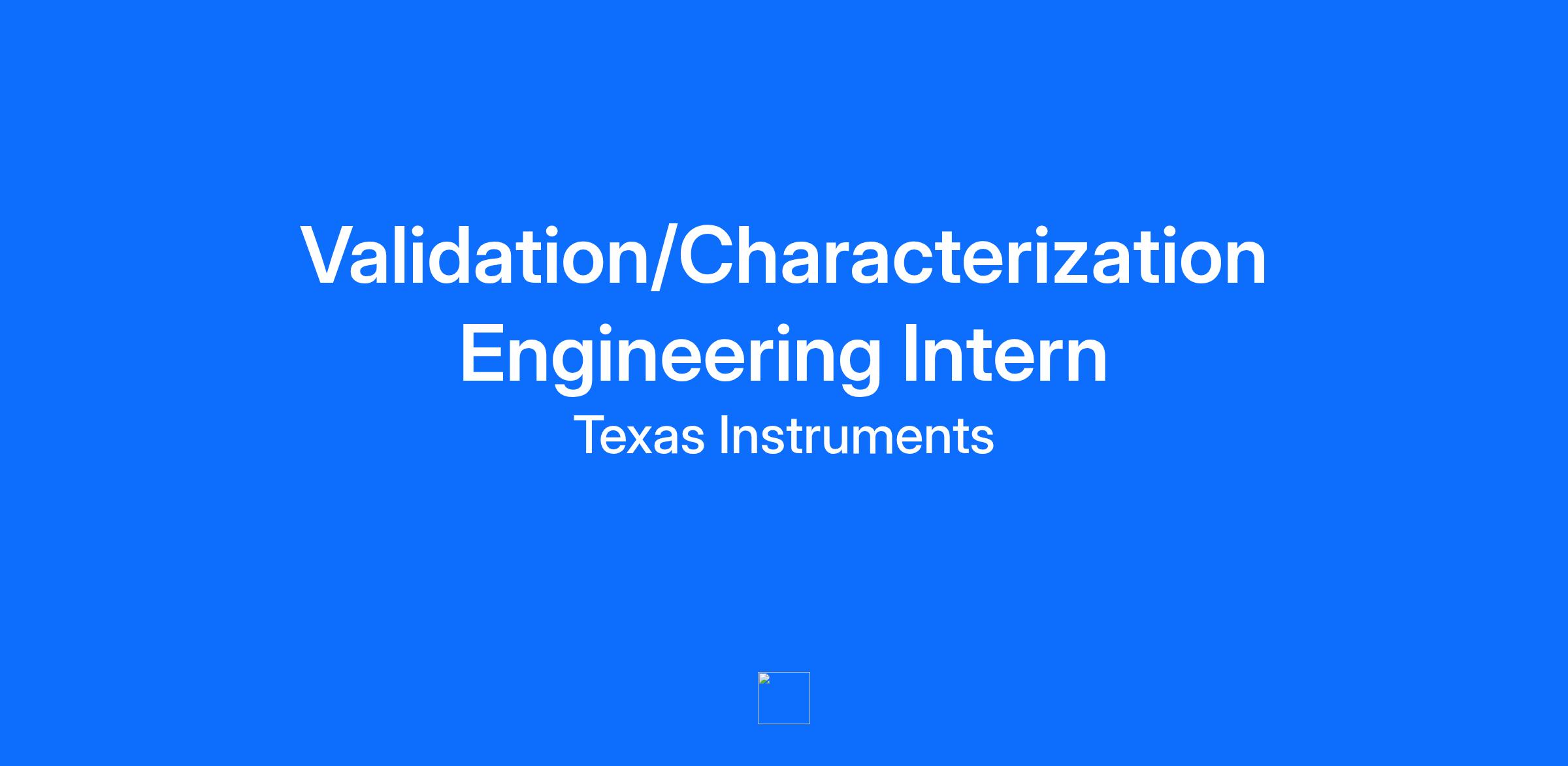 The Validation/Characterization Engineering Intern at Texas Instruments are powered by a passion for continual improvement. Our solutions make a real difference and yours will, too. We make the semiconductor product design process easier and faster, which helps our customers succeed in today's fast-paced marketplace.