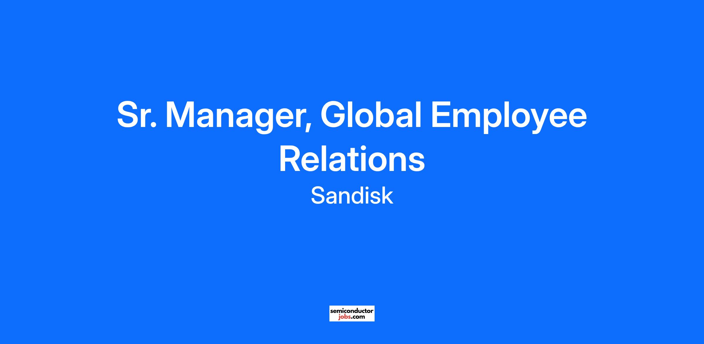 - Drive & support the strategic goals and initiatives of Sandisk’s global ER function. This includes change management, driving ER credibility, efficiency and governance of processes in partnership with the Global ER Director.